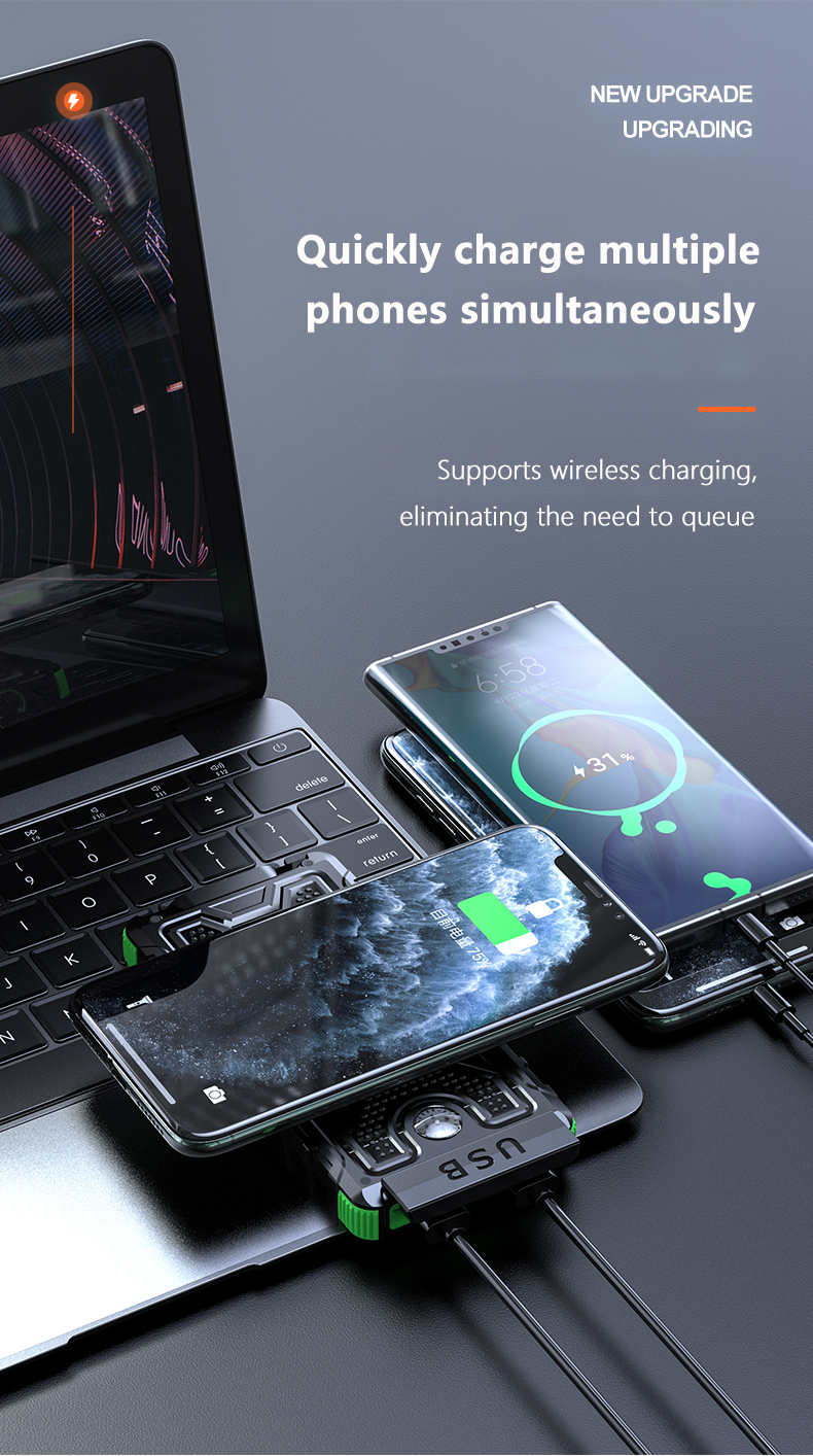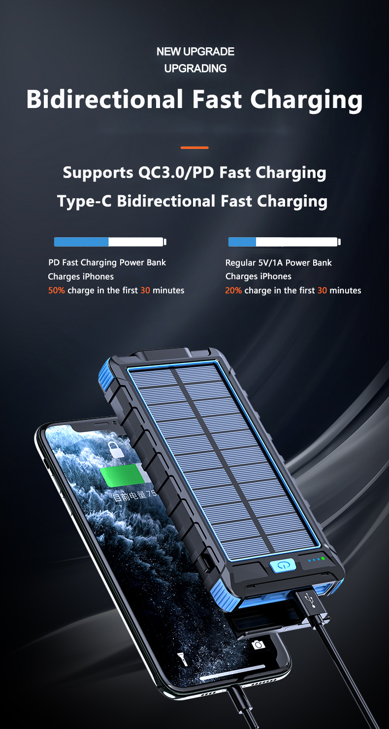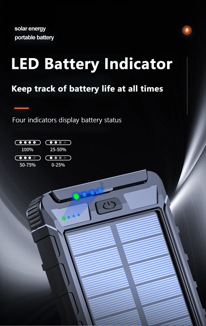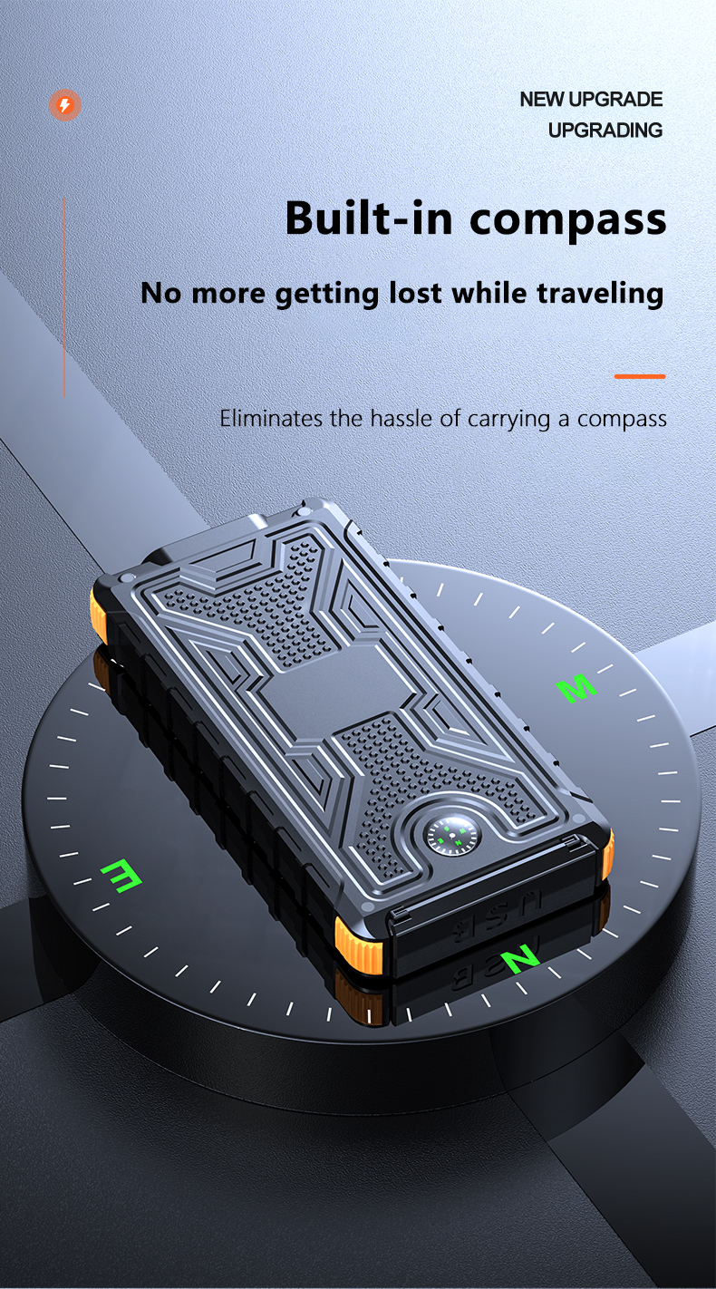 • 【Multi-Functions Features】 A High-Precision Compass has been built in the back of the portable charger, two super bright LED flashlights support both lighting mode & SOS mode.