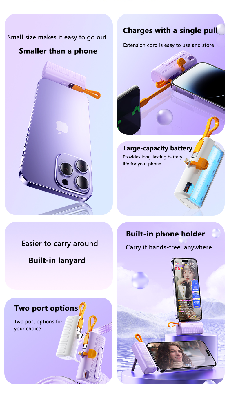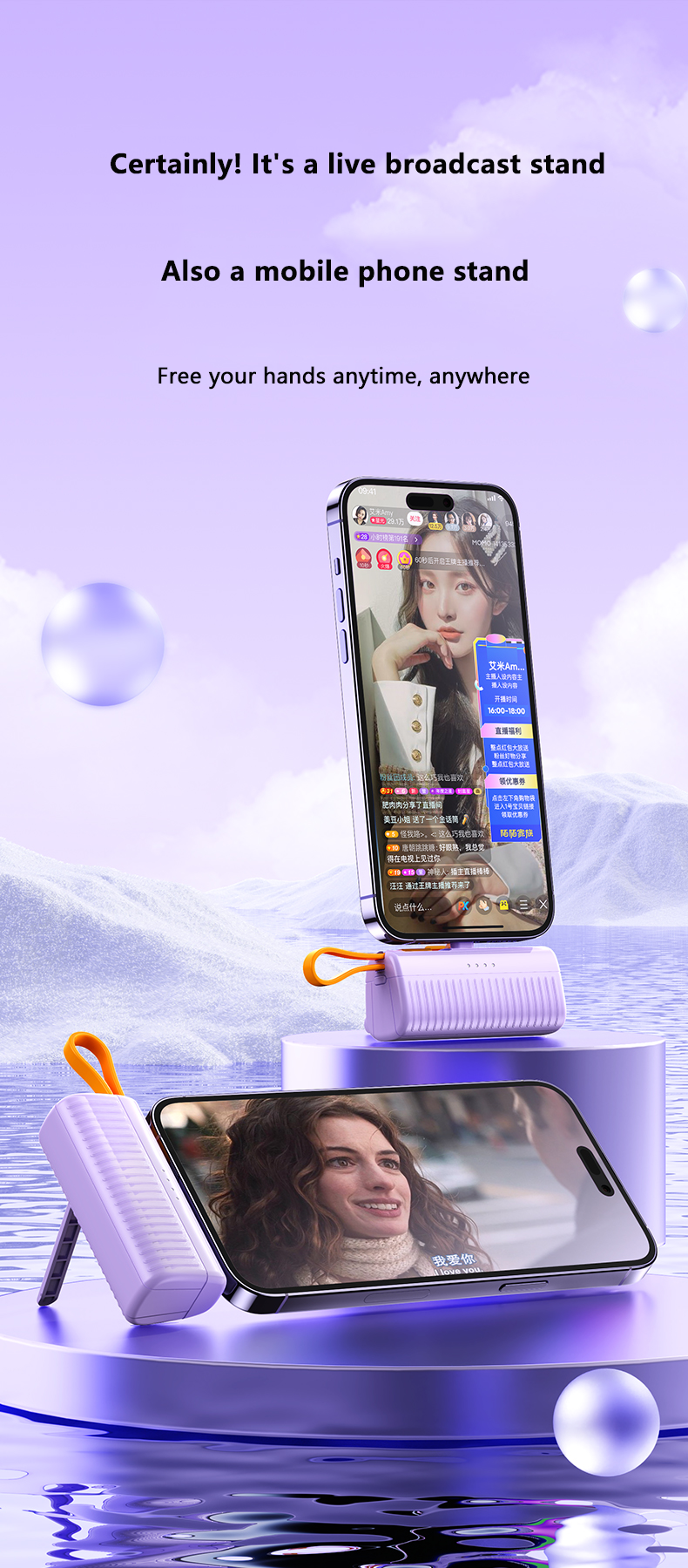 • [Portable charger] Self-supporting bracket: The flexibility of portable charger allows you to choose between horizontal and vertical placement, making it very suitable for watching movies or browsing the web. Use this stand to experience convenient and comfortable charging