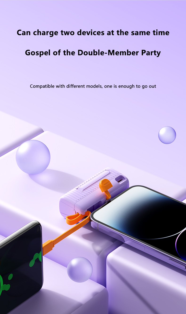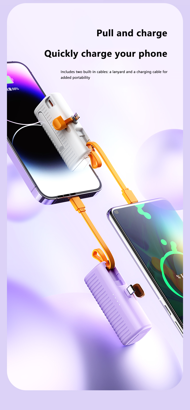 • Practical, Charging Super Fast: The power bank with cables is not only practical but also charges incredibly fast. Whether you're outdoors or just going through your daily routine, it can quickly replenish your phone. No more anxiety.